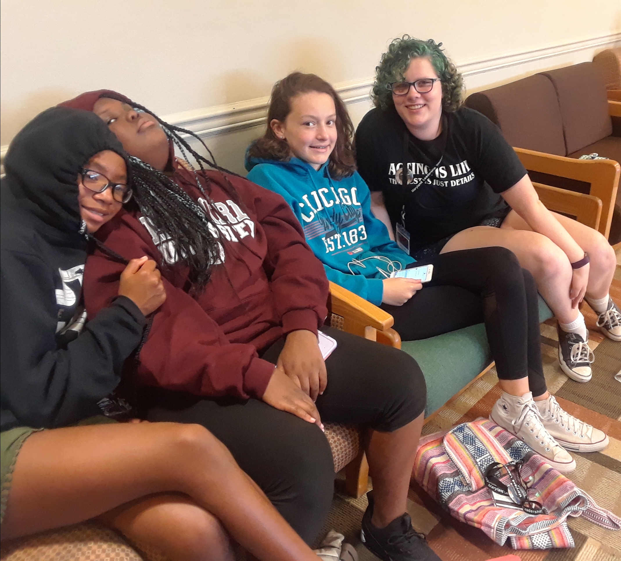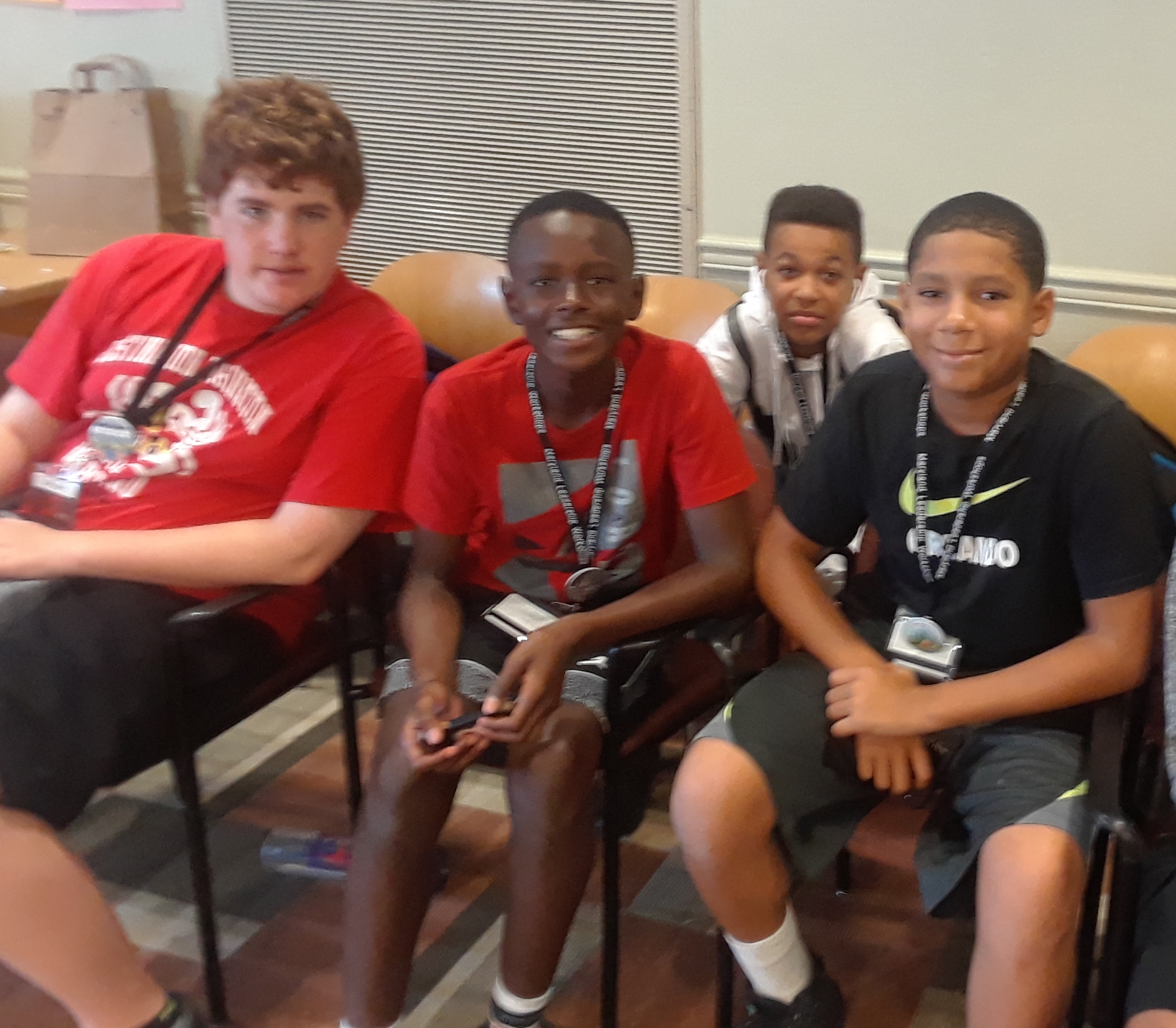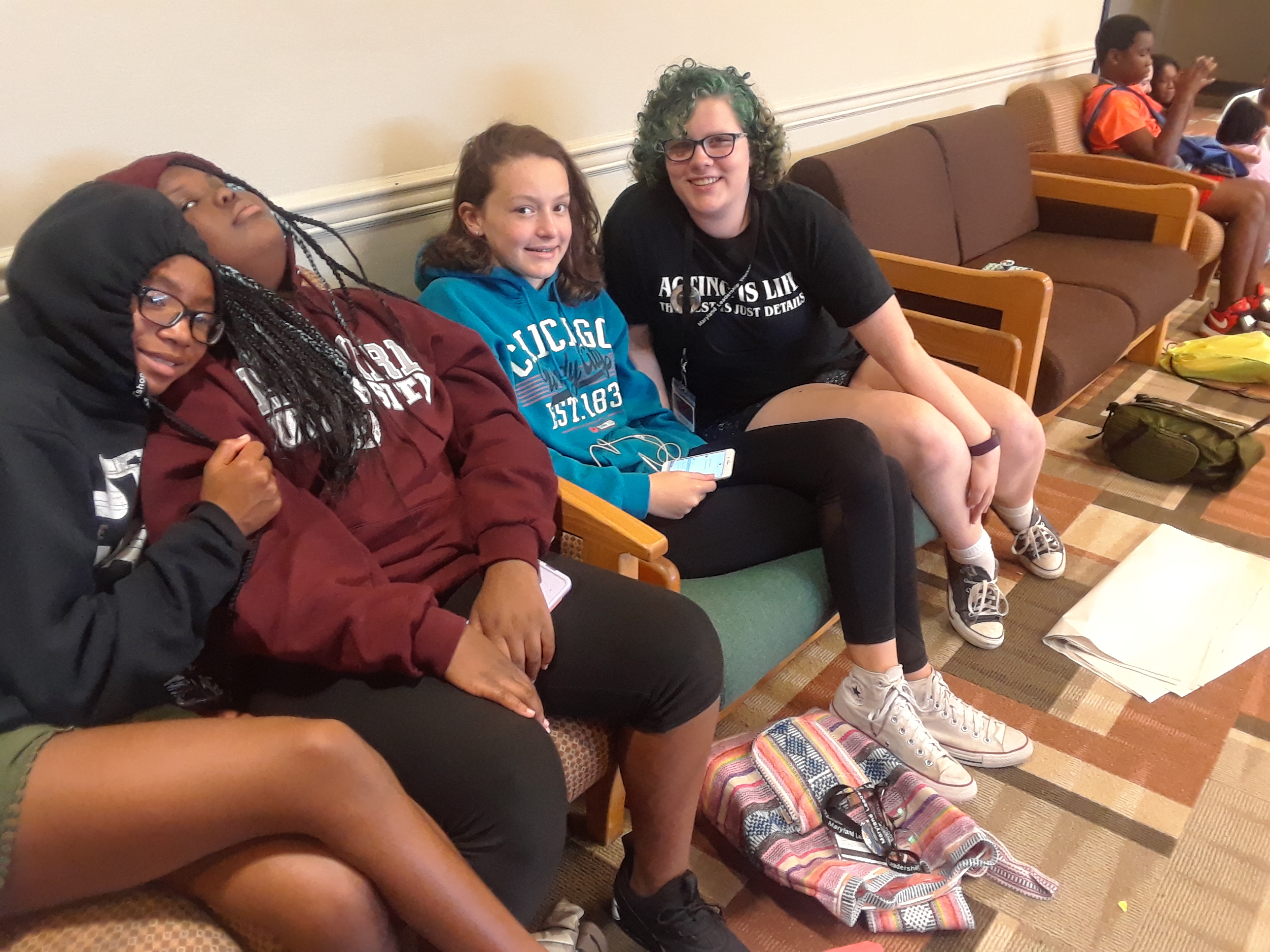 Next, delegates went with their tuning partners for an hour of goal-setting and mentoring. Our recreation time had to be moved indoors due to weather, but luckily there’s plenty of indoor space available in Patapsco. Last, delegates ended our very long day enjoying the movie Coco.