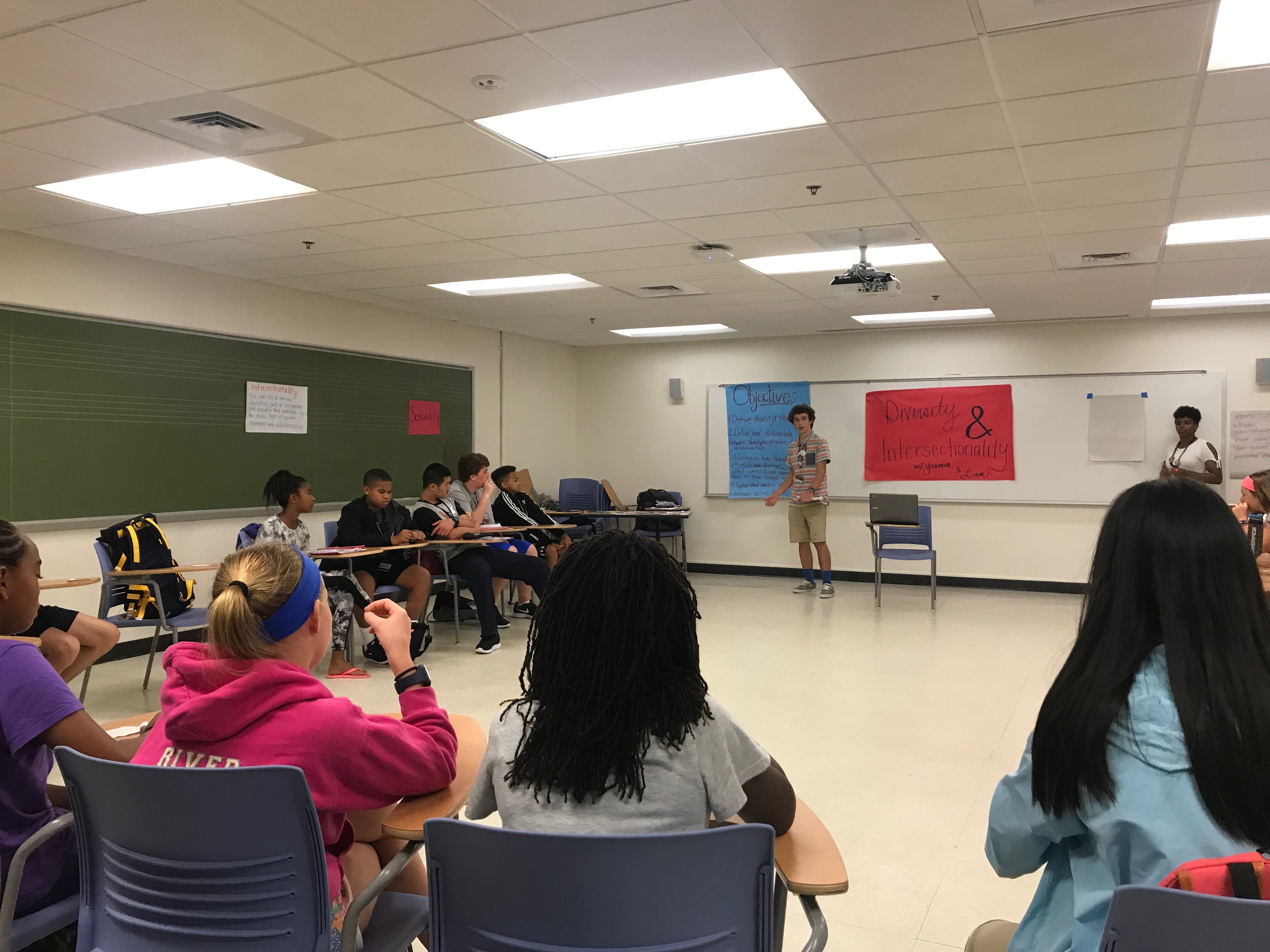 Diversity and Intersectionality: This is always a delegate favorite. In this workshop, delegates explore who they are and various pieces of their identity. Delegates talk about gender, race, religion, and socioeconomic status. Delegates also learn about stereotypes, prejudice, and discrimination and how to combat them. This year, delegates explored their own identity and the unique and diverse perspectives of their group.